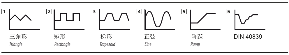 所有型號(hào)都配有可生成典型函數(shù)的函數(shù)發(fā)生器,如下圖所示,可以應(yīng)用到輸入電壓或電流上。函數(shù)發(fā)生器可由前板的旋鈕跟按鈕完全配置和控制,或者經(jīng)數(shù)字接口遠(yuǎn)程控制。
