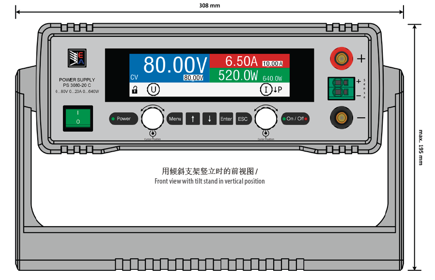 本系列有0...40 V和0...200 V輸出電壓,0...2 A和0...40 A輸出電流,0...160 W和0...640 W輸出功率的不同型號。因此不管是手動控制還是遠程控制(模擬或數字),都可在0%與100%之間連續調節電流、電壓與功率。輸出端位于產品前面板上。